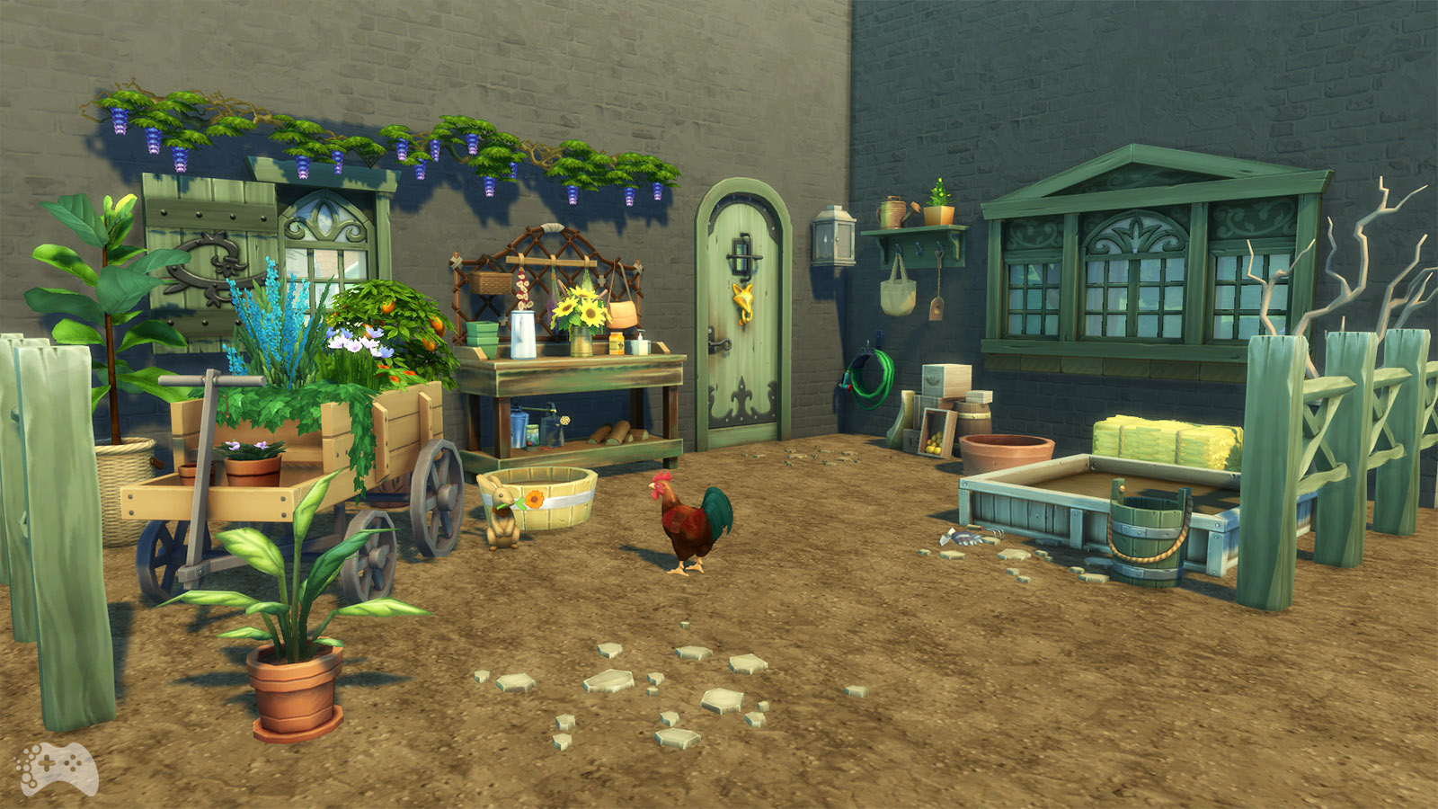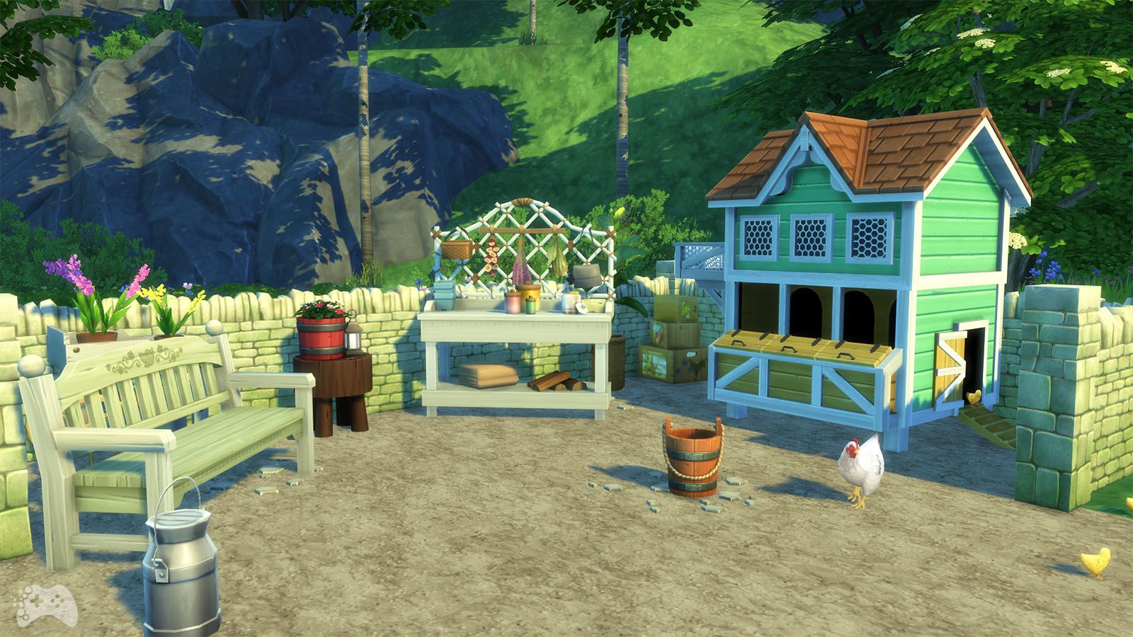 Dodatek The Sims 4 Wiejska sielanka wprowadza także do ogródka mnóstwo nowych obiektów. Wśród nich na pewno warto wyróżnić ławeczkę do siedzenia oraz ozdobną ławkę, na której ustawione są różne dekoracje. Dodatkowo do gry zostało dodane kilka kwiatów i roślin w doniczkach oraz rosnący po ścianie bluszcz.